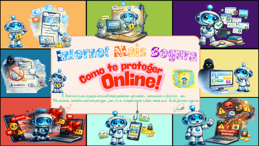 Nos meses de outubro e novembro, nas aulas de Tecnologias da Informação e Comunicação, decorreu uma atividade dedicada à sensibilização e aprendizagem sobre Cibersegurança, com a participação ativa de todos os envolvidos. Durante esse período, os participantes desenvolveram diversos trabalhos digitais com o objetivo de aprofundar o conhecimento sobre as boas práticas de segurança online, riscos digitais e formas de proteção no ambiente virtual.